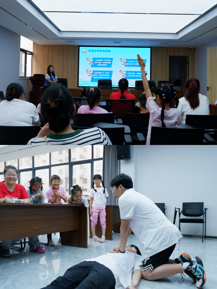 6月30日,志愿服务队来到儒林西苑社区,队员们围绕牢记“六不准”、同伴落水施救、辨别溺水现象、溺水自救、溺水急救方法等进行防溺水安全教育宣教,同时以理论与实际操作相结合的方式,向小朋友展示心肺复苏方法。小朋友们全程专心听讲、认真思考,并踊跃举手发言。