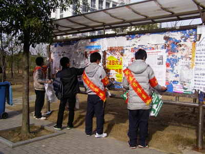 时间:2010-03-12 来源:人员机构 阅读次数:为净化校园环境,推进公司精神文明建设, 药学系08级团总支组织青年志愿者于3月11日下午开展了“构建和谐校园、清除校园小广告”活动。