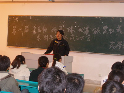 会上首先由李康才老师对近期举行的羽毛球赛进行了总结,对在比赛中获奖的同学表示了祝贺,并宣布以此为契机成立药学系羽毛球队,希望系队成立后能够发挥药学系一直以来的优良传统在今后的训练及比赛中取得好成绩。同时希望系队可以多和兄弟系部多进行友谊比赛,增进友谊。最后各位老师给在羽毛球赛中获奖的20位同学及4个特别奖项颁发了证书。