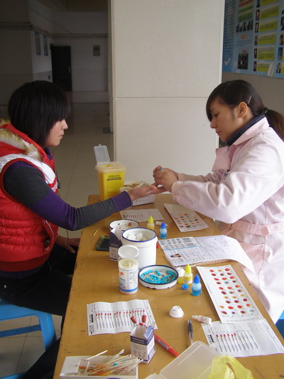 到达血站后,在血站工作人员的安排下,经过填表、体检、快速检验三个环节的检查,最后确定了参加本次献血的同学。