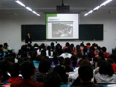 讲座中,主讲人根据自身的考研经历,结合当前考研形势,就“要不要考研”、“如何备战考研”、“考研注意事项”等给予同学们指导,并提出了很好的意见和建议。通过讲座,有效解决了同学们在考研路上的一些疑问和困惑,增强了大家考研的动力。