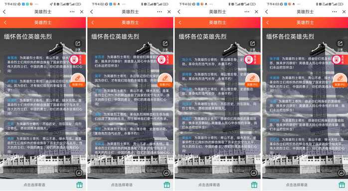 “线上祭英烈”活动。在“线上祭英烈”活动中,同学们通过皖事通“云祭祀”向英雄烈士献花、留言、敬献花圈,缅怀革命先烈,表达自己继承先烈遗志,为新时代中国特色社会主义建设多作贡献的决心和信心。