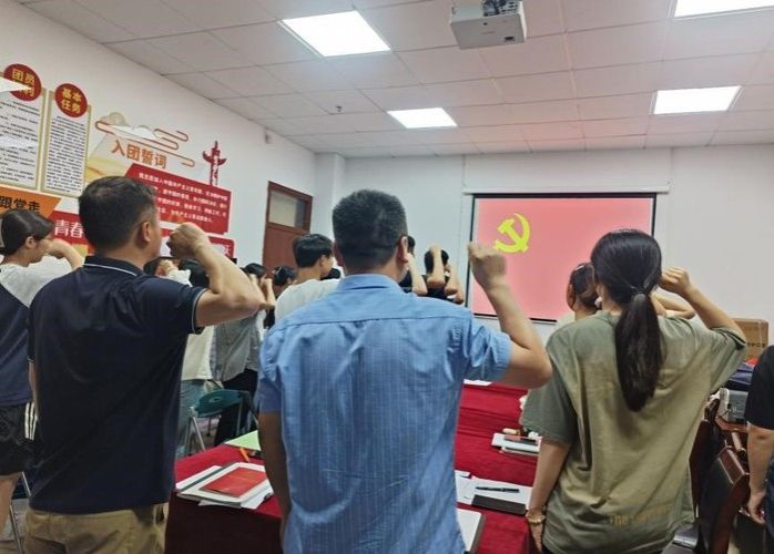 重温入党誓词。“我志愿加入中国共产党,拥护党的纲领,遵守党的章程……”在公司团委书记唐保露老师领誓下,全体党员面对鲜红的党旗高举右手,重温入党誓词,再次接受党性洗礼,重新感受入党时的承诺和初心使命,更加坚定了紧跟党走的信念信心。