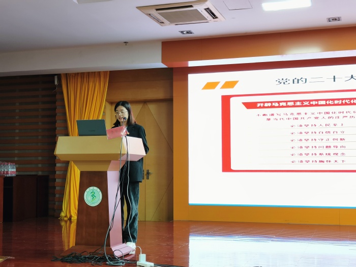 比赛现场还特邀安徽省首批样板党支部负责人、员工第二党支部书记李苹苹老师分享关于党的二十大精神学习体会。比赛结束后,黄英对参赛选手进行点评,充分肯定了参赛选手们的精彩表现,指出同学们用微课方式把理论“融化”在身边的故事里,让党的二十大精神接地气、入人心。同时,她从语言的感染力、内容的独特性、表达的逻辑性等方面,提出了进一步完善的建议。经激烈角逐,活动最终评选出一等奖2人、二等奖3人、三等奖4人。