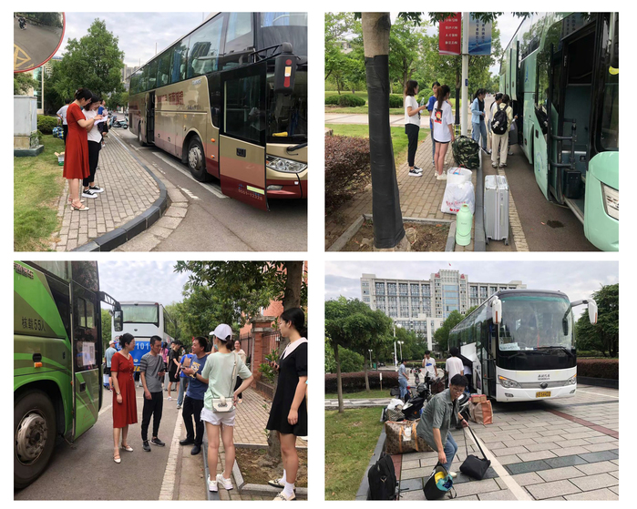 精准对接,传递情谊。李娜、吴林羽在实习送点现场指挥,协调整个实习下点过程,秩序井然。留校参与科研实习的员工组织成立了爱心车队进行志愿活动,主动前往实习生寝室,帮助打扫卫生、搬运行李。18名跟车送点老师实时与实习点负责人、实习生对接,做到信息沟通及时,确保员工人身安全等。