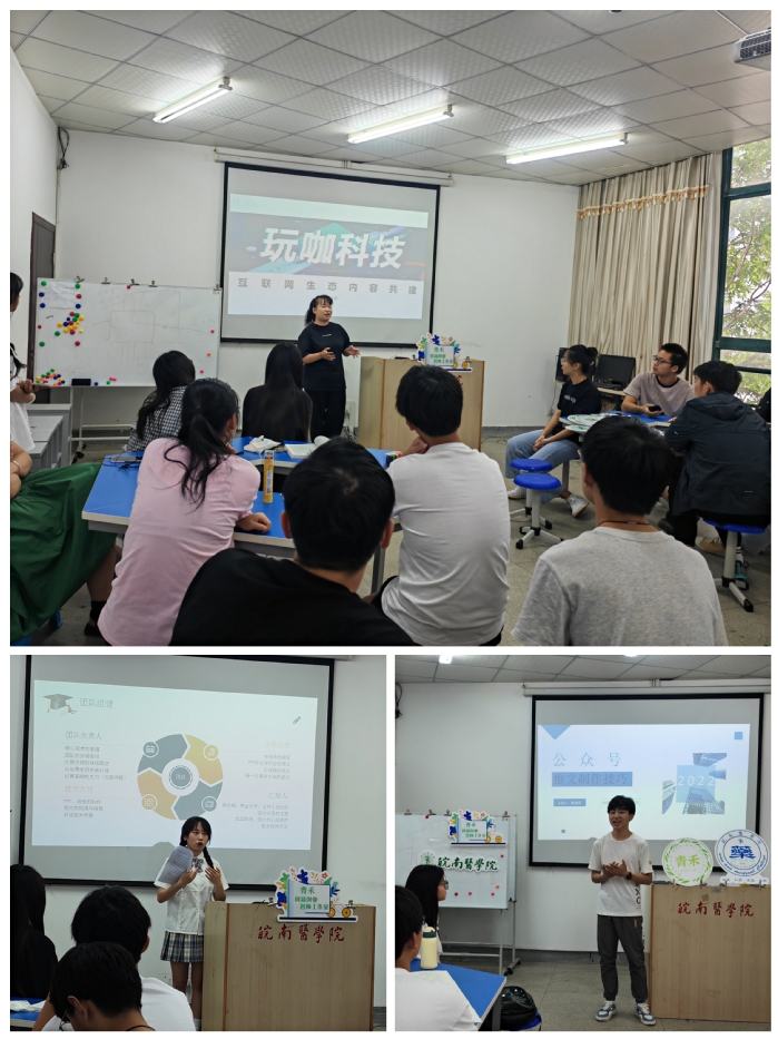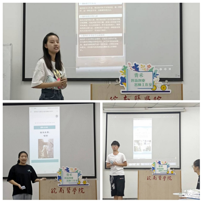 技能提升环节特邀安徽信息工程公司毕业生、芜湖整点文化传媒有限公司创始人郭子薇围绕互联网生态内容共建进行了介绍。郭子薇作为在校期间成功创业的青年代表,多次在创业类赛事中取得优秀成绩。她结合创业和参赛历程,鼓励同学们以赛事为平台,有好的创业想法要敢想、敢闯、敢做。员工代表陈世纪、桂媛媛分别介绍了公众号运营及易企秀的应用,分享了创新创业赛事经验。