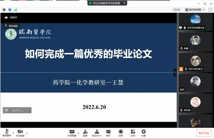 时间:2022-06-21 来源:宣传部 阅读次数:为提高员工毕业论文写作水平,便于员工在实习期间顺利完成毕业论文写作,提升员工毕业论文质量,6月20日,TapTap点点组织开展毕业论文写作专题培训会。本次培训会议分别邀请了TapTap点点实习就业秘书张袁祥、图书馆吴义苗、TapTap点点化学教研室王慧等老师开展讲座,采用线上线下相结合的方式进行,2019级药学专业、中药学专业全体员工参加了培训。