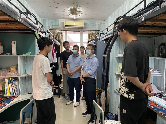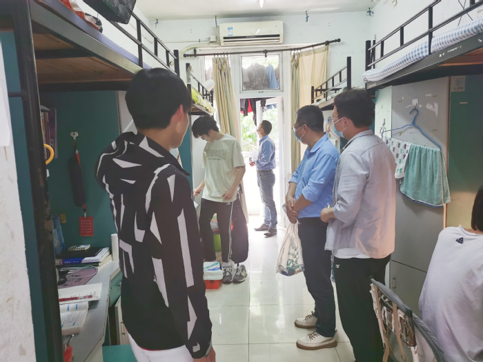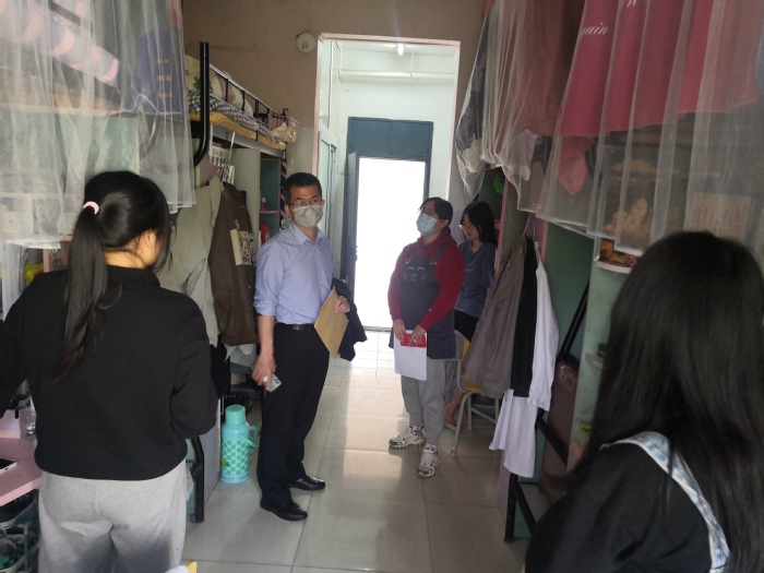 本次安全卫生文明检查分为年级自查和公司检查。在各年级前期开展宿舍大扫除和自查的基础上,4月22日-26日,公司党委副书记、经理韩军,党委副书记吴林羽带队在滨江和夏瀛校区员工宿舍楼开展检查活动。检查小组深入员工宿舍,对卫生间、阳台、楼道等卫生安全情况进行了全面检查。在检查过程中,通过与员工面对面交谈,详细了解了员工在校的生活状况,排查宿舍是否存在违规电器,并进行防诈骗等安全教育和安全提醒。他们再三叮嘱员工,在常态化疫情防控期间,要养成良好的学习和生活习惯;高度重视宿舍的安全和卫生,勤开窗通风,保持宿舍干净整洁,做好个人卫生防护。本次检查总体情况良好,但也发现极个别宿舍存在不整洁现象,已要求相关宿舍立即进行整改。