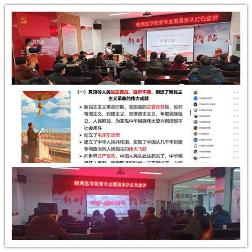 百年风华正茂,红色血脉不息,志愿服务队队长、皖南医公司党的十九届六中全会精神老员工宣讲团成员陈静同学以线上和线下的形式为李巷社区居民和2021级全体员工开展了党的十九届六中全会精神的宣讲会并组织观看红色电影《长津湖》,让更多的居民和老员工见证国家百年奋斗重大成就和无数革命先烈的奋斗历程,感受中华民族伟大成就的来之不易。