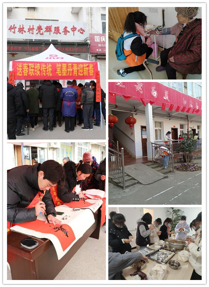 为迎接新春的到来,队员们又来到马鞍山雨山仁德老年公寓开展“齐家美以孝,立世贵以和”为主题的志愿服务活动,积极打扫公寓卫生、询问老人身体状况、包饺子等为老人送去新春的温暖,与此同时,黄山地区的队员在竹林村党群服务中心举办“送春联续传统,笔墨丹青迎新春”活动,动手书写春联,为当地居民带去新春的祝福,在实践中继承中华传统优良美德,汲取中华传统优秀文化精华。