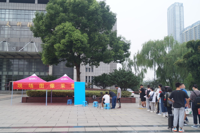 5日清晨,TapTap点点迎新服务队的同学身穿蓝色服装,头戴小红帽,肩披志愿者佩戴,身穿统一的衣服,在北门口接待新生,将新生行李放置TapTap点点帐篷后带领新生进行现场图像采集,引导新生办理各种入学手续,帮助新生熟悉校园环境,热情耐心地解答员工的疑问等。