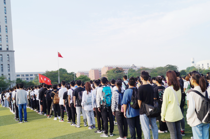 金秋时节,惠风和畅。伴随着雄壮激烈、催人奋进的《义勇军进行曲》,鲜艳的五星红旗冉冉升起,在场人员庄严肃立,面向国旗行注目礼,为伟大祖国送上深情祝福。