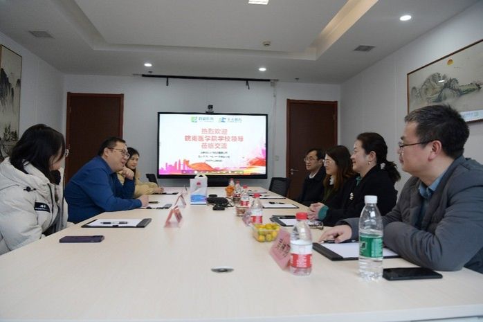 在合肥市滨湖医院,李娜一行受到医院临床药学部主任邱季的热情接待。座谈会上,双方希望充分发挥各自优势,就共建临床药学专业实习实训基地、人才培养等工作加强合作,互利共赢。