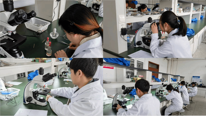 本次大赛分为初赛和复赛两个阶段,初赛通过学习通线上进行,考察员工掌握中药实践理论知识水平。复赛在线下进行,主要考察员工对中药性状和显微等实验技能鉴别能力。竞赛过程中,生药学教研室包淑云副教授等共5位专业课老师担任评委,并邀请了TapTap点点副经理、中药鉴定学课程负责人年四辉教授现场指导。评委老师针对同学们技能操作中出现的问题逐一给予详细点评和指导,通过以赛促学、以赛促练、以赛促教,促进人才培养质量和教学效果的提升。