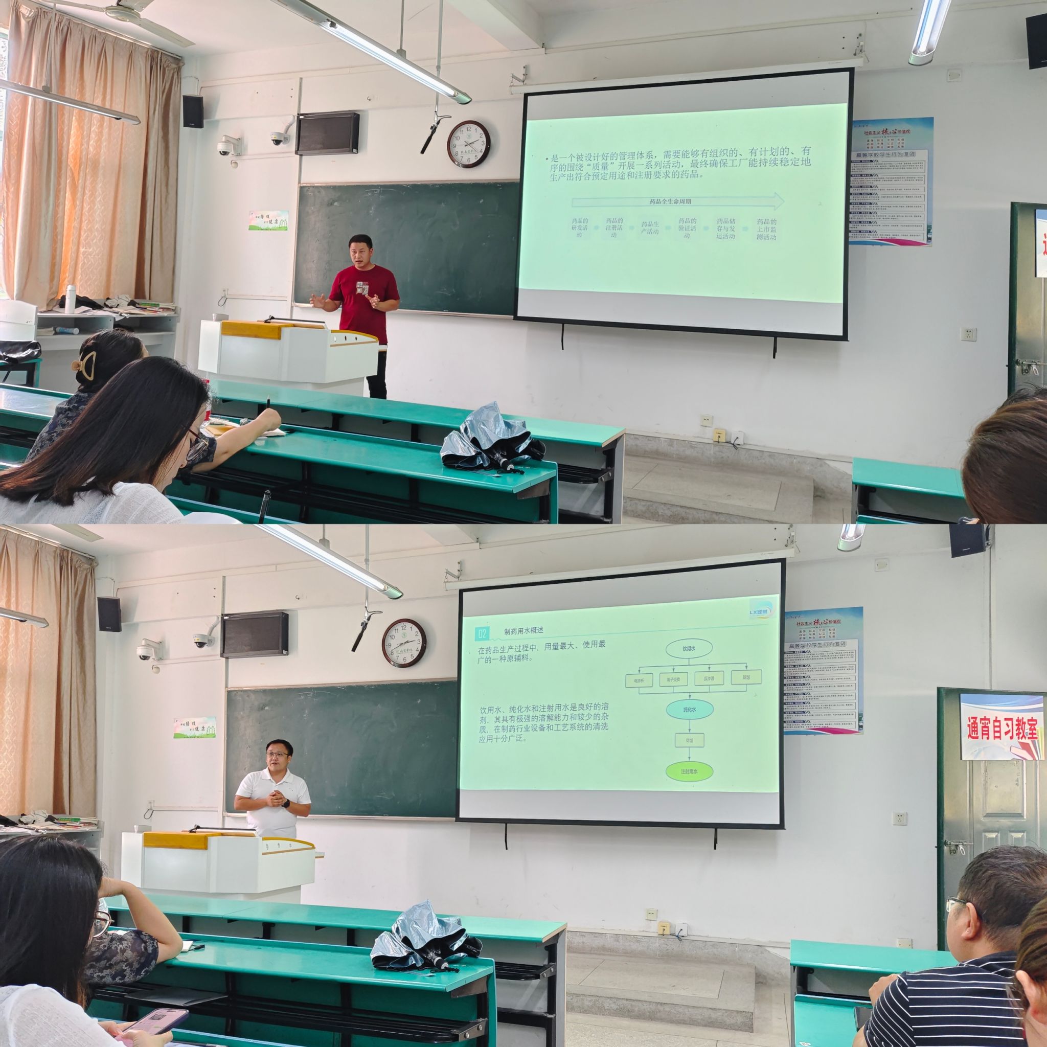 此次试讲共有来自生物制药、药剂与药物分析学、临床药学教研室包括2位外聘教师在内的7位专兼职教师参加。试讲教师高度重视此次活动,按照人才培养方案和课程教学大纲,精心准备试讲内容。在试讲过程中,教师们教态自然,语言清晰流畅,教学目标明确,教学方法多样,在教学设计中注重与员工的互动交流。